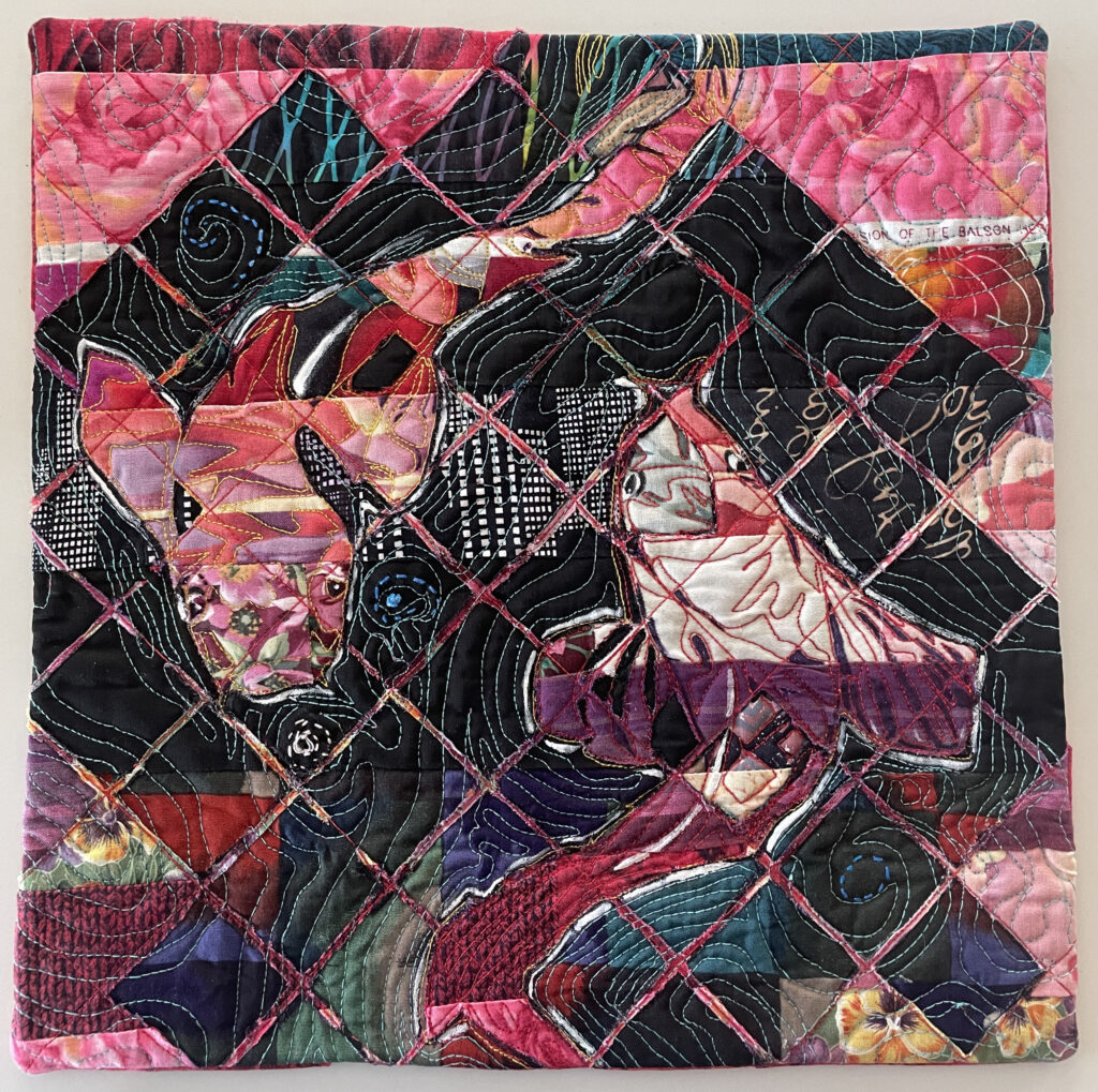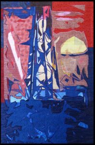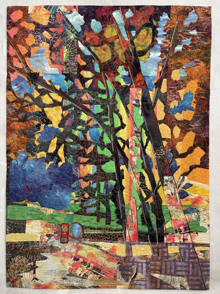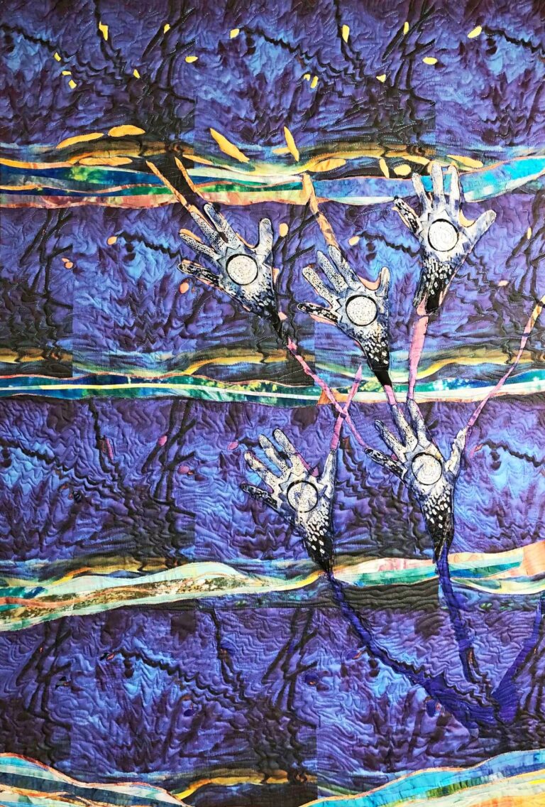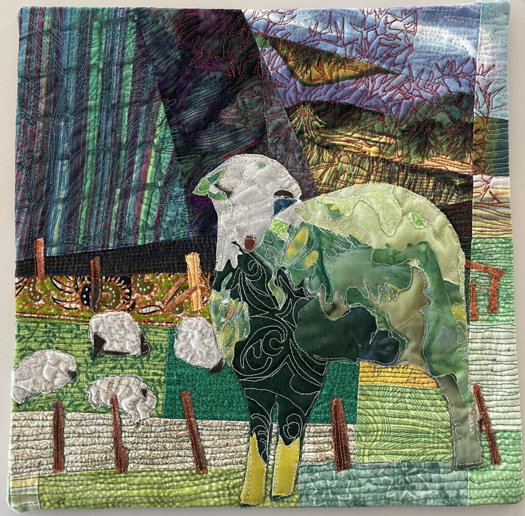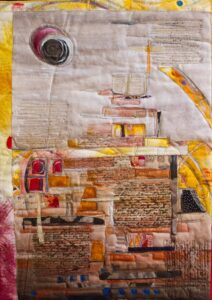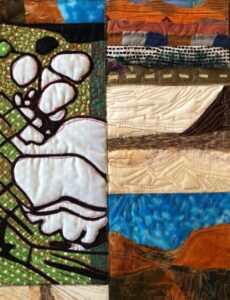 Art created using cotton and poly fibers using collage techniques, applique, paint and stitching. Work is ready to hang on the home or office walls. The artwork gives a touch of warmth, intrigue and originality.