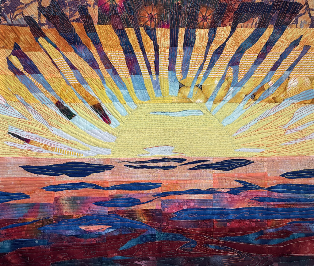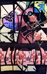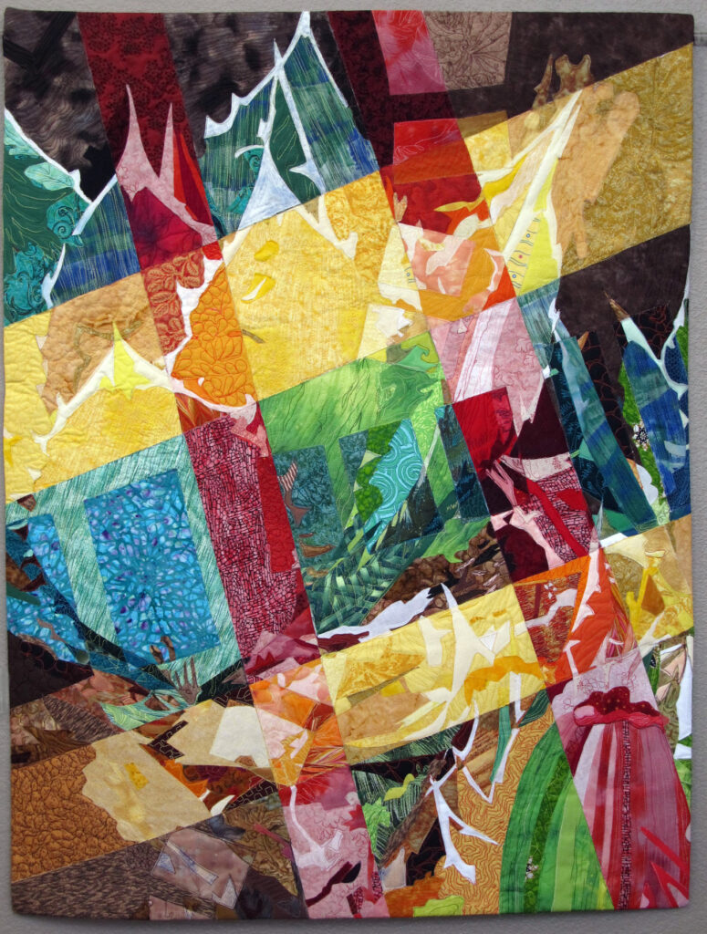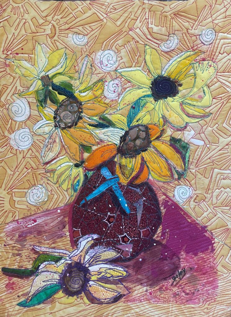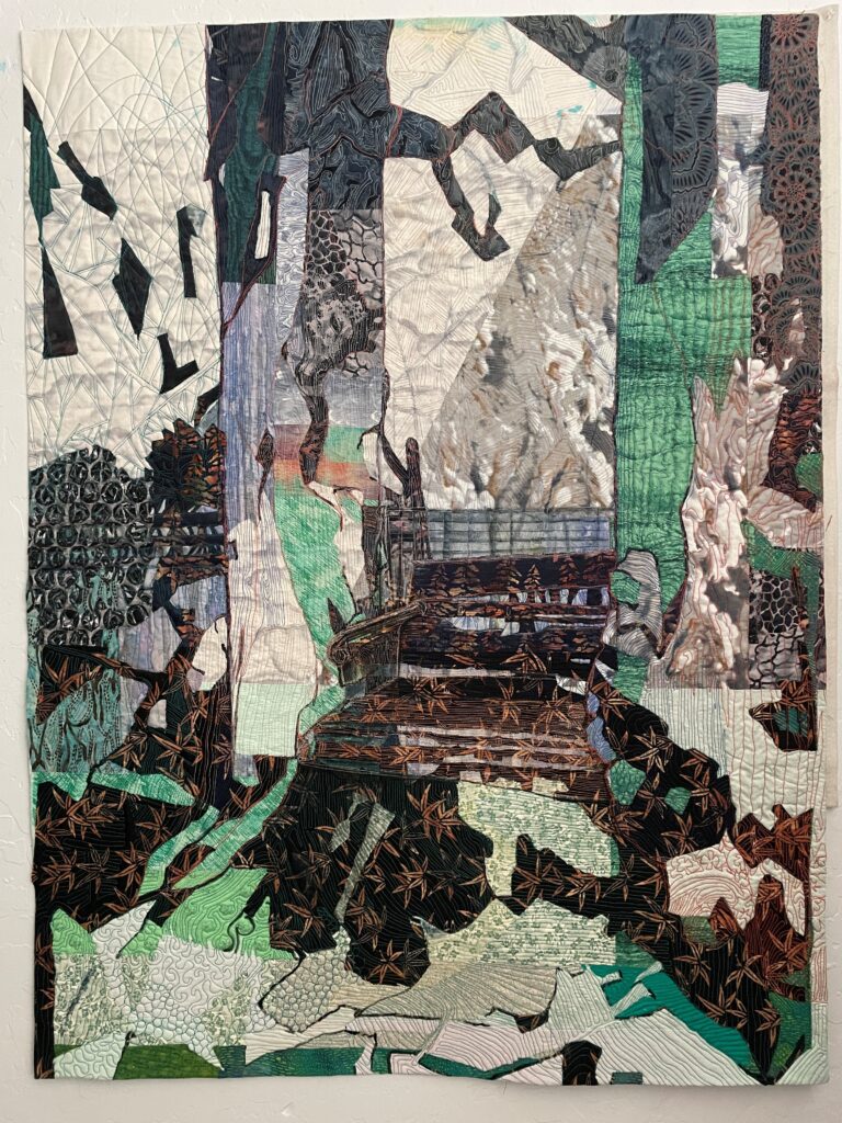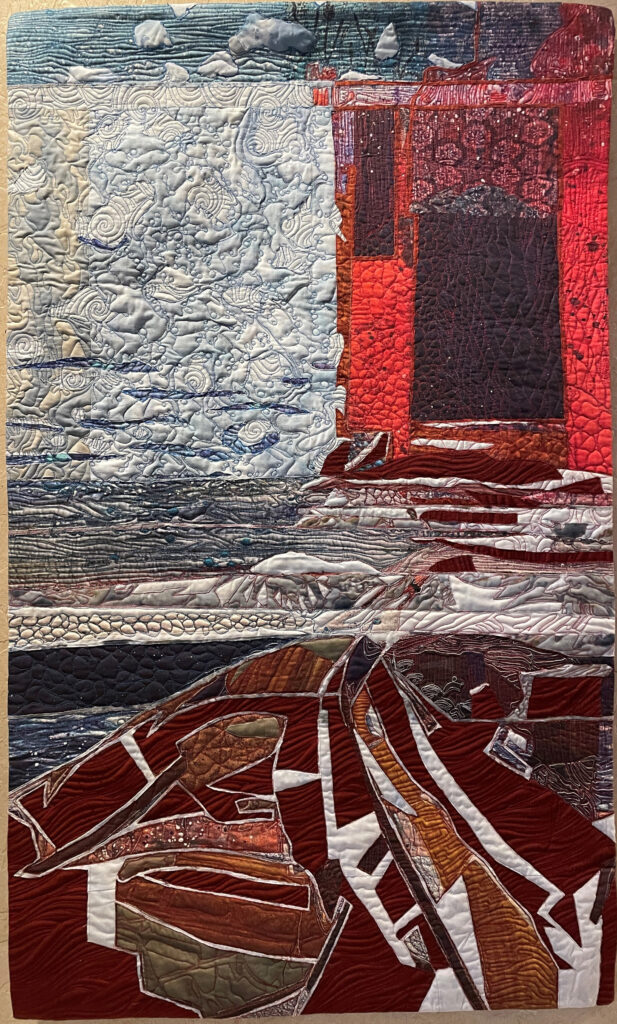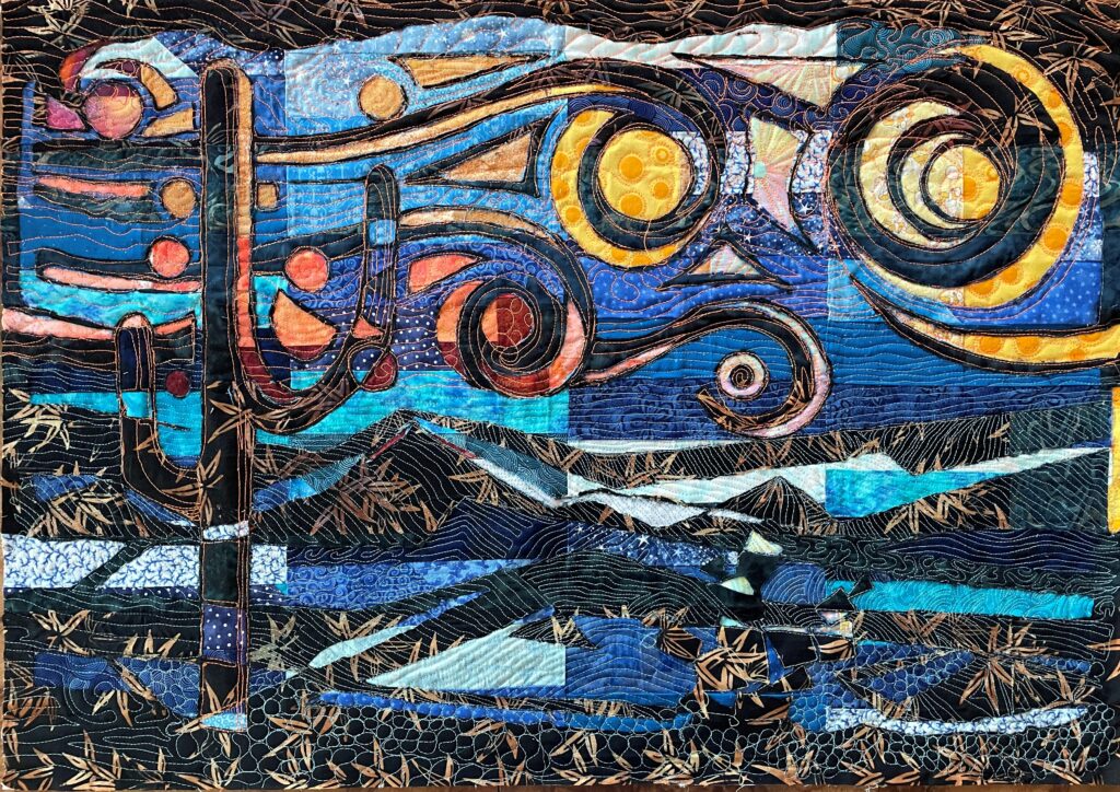 Art created using cotton and poly fibers using collage techniques, applique, paint and stitching. Work is ready to hang on the home or office walls. The artwork gives a touch of warmth, intrigue and originality.